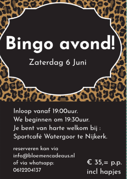 We hebben weer een nieuwe Datum!!!!! Zaterdag 6 juni geven we weer een kei gezellige bingo!